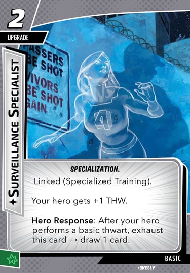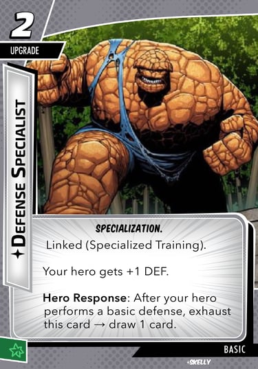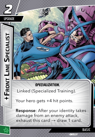 Clarity of Purpose- There's a handful of heroes like Hulk, She-Hulk, Spider-Ham, and X-23 who would love to have this upgrade. If someone like that is in your group, just throw a copy of this into your leadership deck.