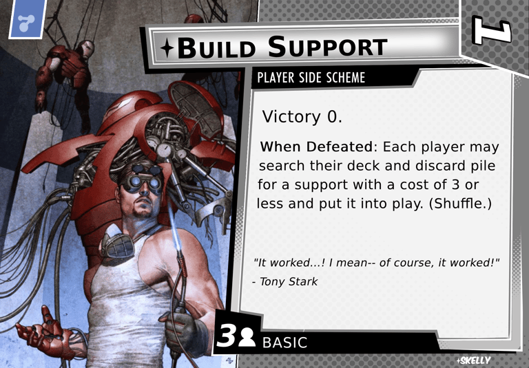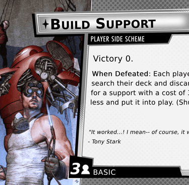Helicarrier- Someone in your group is probably playing Build Support, and this is a great one to just throw into your deck if you don't have any better support cards. This is also great to swap with X-Jet or Quinjet so you don't have to fight with your team for those cards.